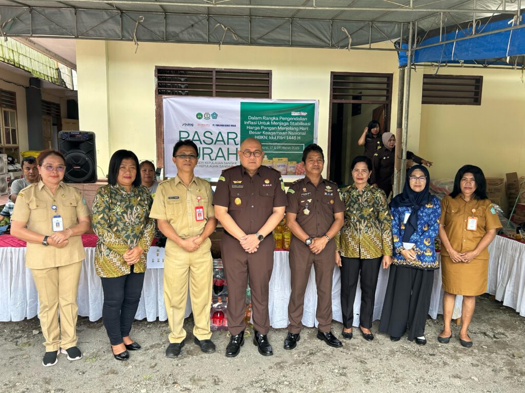 Tahuna- Kepala Kejaksaan Negeri Kepulauan Sangihe Dr. Hendra A. Ginting, S.H., M.H., membuka Pasar Murah Dalam Rangka...