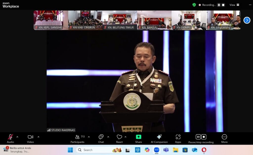 - Penyerahan Hasil Rapat Kerja Nasional Kejaksaan RI Tahun 2025 dari Ketua Umum Panitia Rakernas Kejaksaan RI Tahun 2025 kepada Jaksa Agung RI