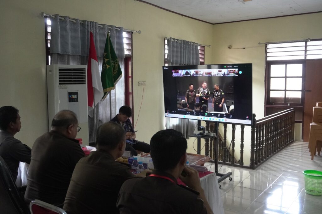Tahuna- bertempat di aula Lantai 2 Kejaksaan Negeri Kepulauan Sangihe, Kepala Kejaksaan Negeri Kepulauan Sangihe Dr. Hendra A. Ginting, S.H., M.H., didampingi para Kasi, Kasubag, Kasubsi, Jaksa Fungsional dan para Calon Jaksa Mengikuti kegiatan Penutupan Rapat Kerja Nasional Kejaksaan RI Tahun 2025 secara Virtual. (Kamis, 16/01/2025)