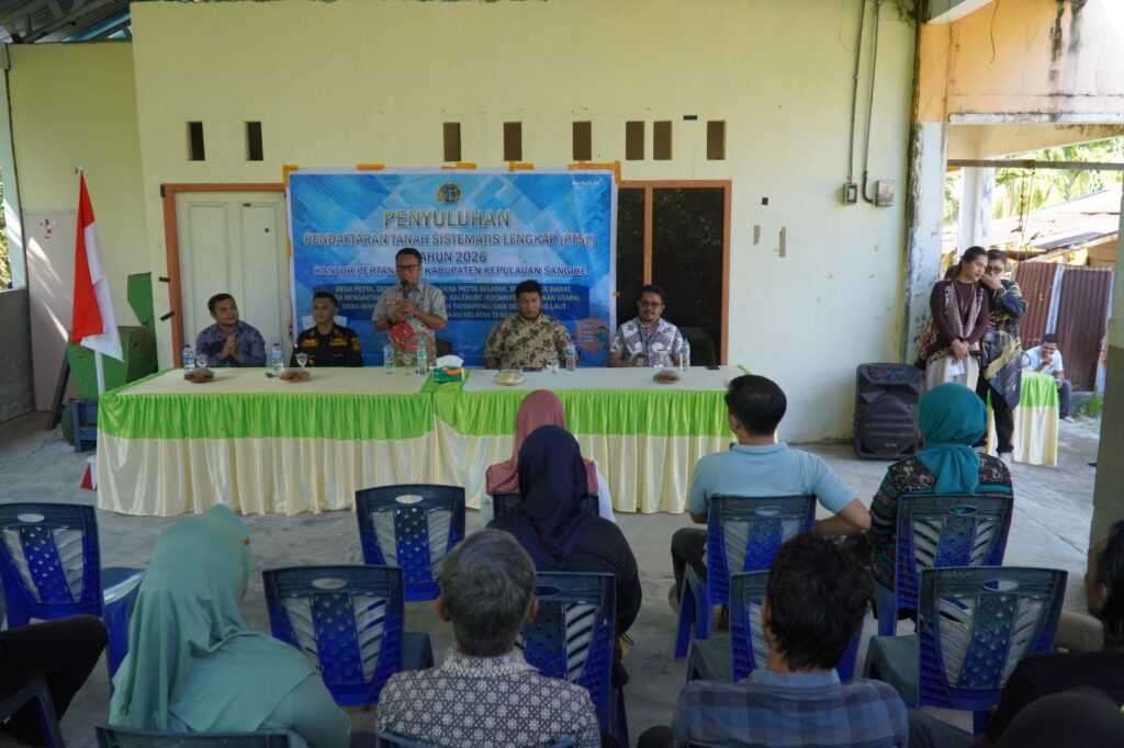 Penyuluhan ini dilaksanakan di Desa Petta Selatan dan Desa Petta Barat, Kecamatan Tabukan Utara, serta dihadiri oleh Kepala Kantor Pertanahan Kabupaten Kepulauan Sangihe Raynolds Alex Mukau, S.E., S.H., M.H., Kepala Desa Petta Selatan, Kepala Desa Petta Barat, Tim Relawan Desa Pelaksana PTSL, serta para pemohon dari Desa Petta Selatan dan Desa Petta Barat.