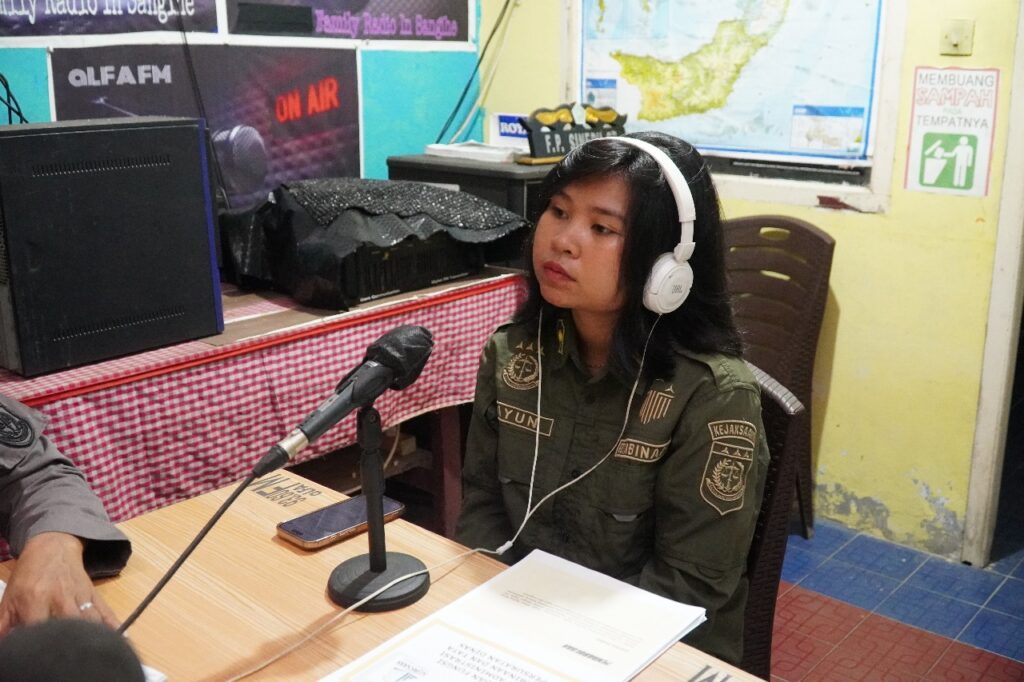 Kegiatan tersebut dilaksanakan di Stasiun Radio aLFA FM 93 ,60 MHz dan diikuti oleh Kepala Sub Bagian Pembinaan Heince Y.Y.I. Kacomba, S.H., staf Pembinaan Pada Kejaksaan Negeri Kepulauan Sangihe Nayunsuk Lalolorang, dan Host Regina Toasyana Sinedu, S.Hub. Int.