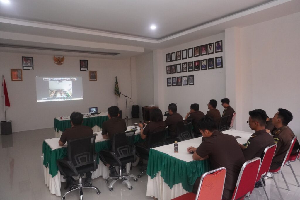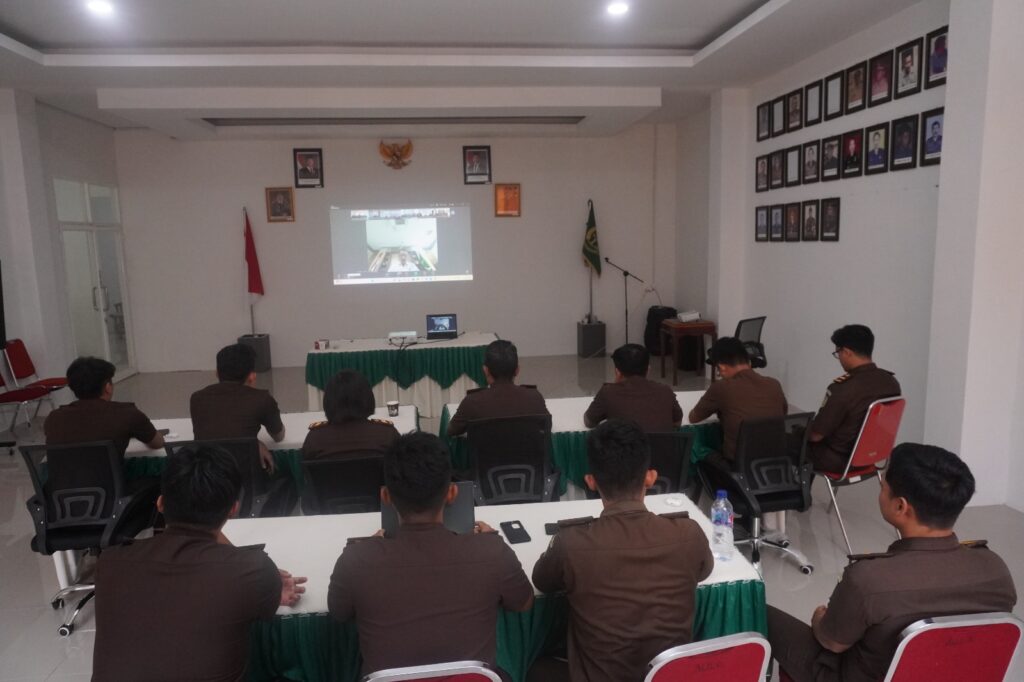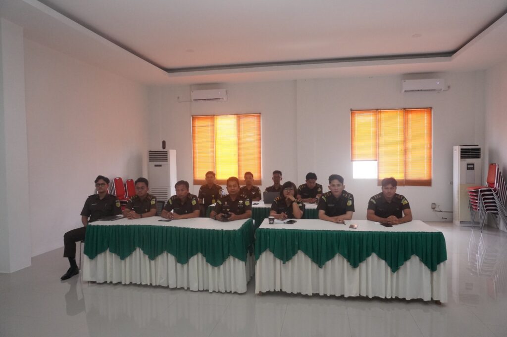 Tahuna- Kepala Subbagian Pembinaan Kejaksaan Negeri Kepulauan Sangihe Heince Y. Y. I. Kacomba, S.H bersama staf pembinaan dan perwakilan arsiparis masing-masing bidang mengikuti Sosialisasi Kearsipan Tahun 2025 secara Hybrid. (Selasa, 24/06/2025)