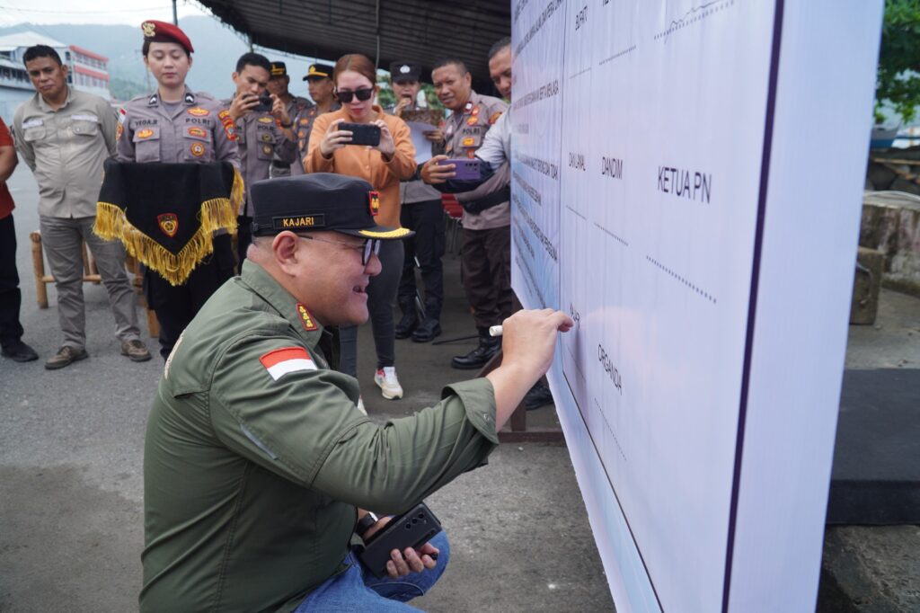 Tahuna- Kepala Kejaksaan Negeri Kepulauan Sangihe Dr. Hendra A. Ginting, S.H., M.H., mengikuti Kegiatan Apel Gelar Pasukan Dalam Rangka Operasi Kepolisian Kewilayahan Patuh Samrat 2025 di wilayah Hukum Polres Kepulauan Sangihe dan dirangkaikan dengan Kegiatan Deklarasi Tertib Berlalu Lintas serta Peresmian monumen knalpot brong Polres Kepulauan Sangihe. (Sabtu, 19/07/2025)
