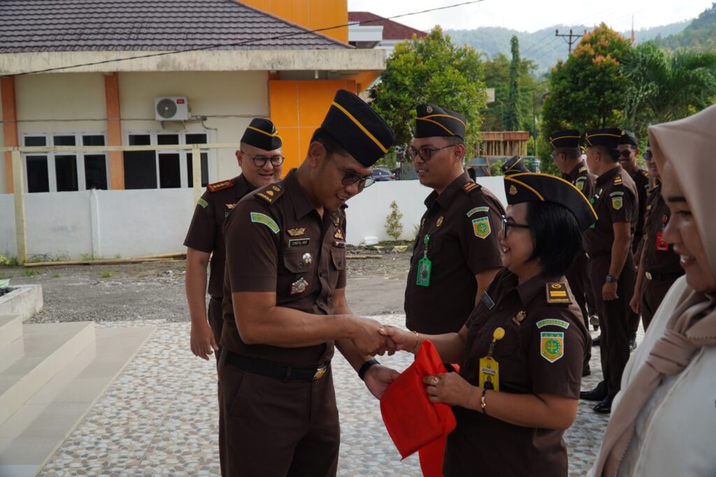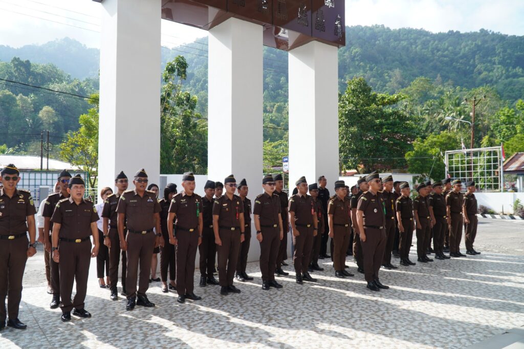 Tahuna- Kejaksaan Negeri Kepulauan Sangihe melaksanakan Apel Pagi Dalam Rangka Hari Bakti Adhyaksa (HBA) yang ke- 65 Tahun 2025 di halaman Kantor Kejaksaan Negeri Kepulauan Sangihe. (Selasa, 22/07/2025)