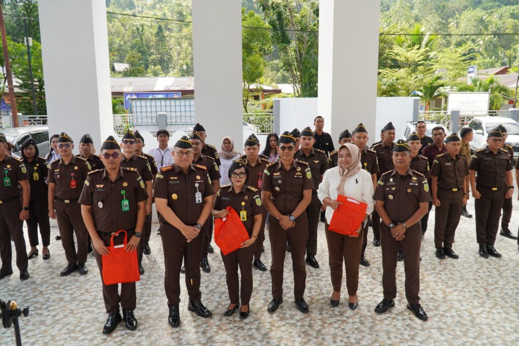 Dalam kesempatan tersebut Kepala Kejaksaan Negeri Kepulauan Sangihe Dr. Hendra A. Ginting, S.H., M.H., bersama Kasi Datun Syaiful Arif, S.H., M.H., dan Kasubagbin Heince Y.Y.I. Kacomba, S.H., memberikan Santunan kepada anak-anak pegawai.