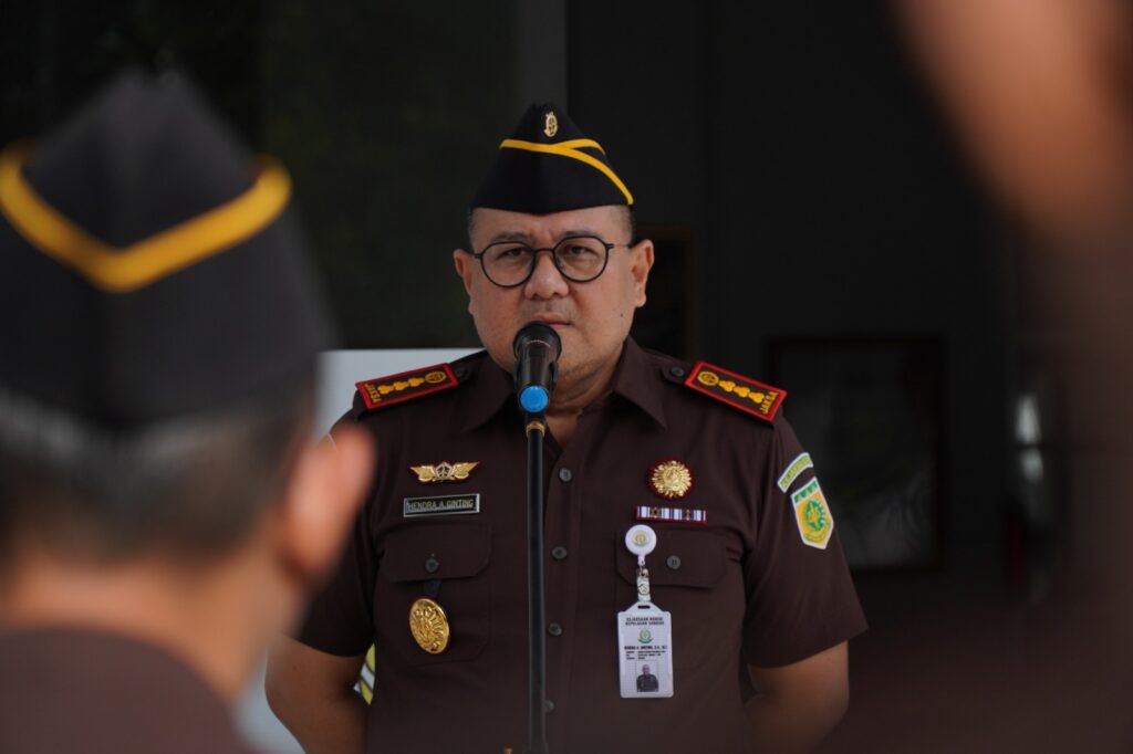 Apel pagi dalam rangka Hari Bakti Adhyaksa (HBA) yang ke- 65 Tahun 2025, Kepala Kejaksaan Negeri Kepulauan Sangihe Dr. Hendra A. Ginting, S.H., M.H., menjadi penerima apel dan diikuti oleh Para Kasi, Kasubag, Seluruh Pegawai Kejaksaan Negeri Kepulauan Sangihe dan Tenaga Ahli Daya (TAD).