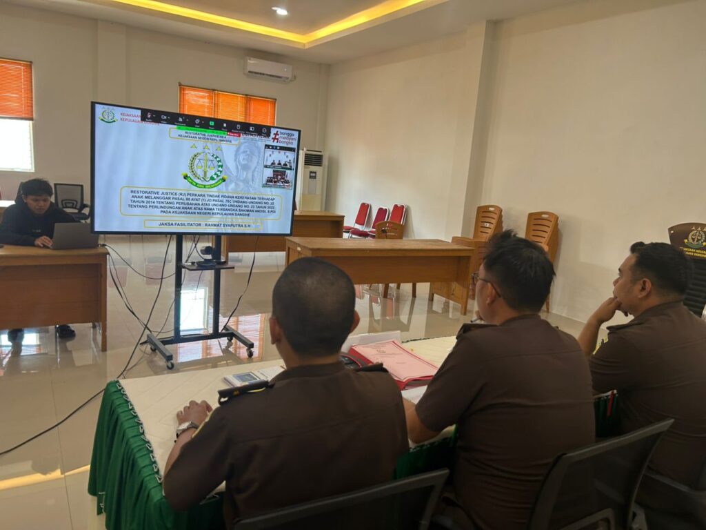 Proses Permohonan Restorative Justice (RJ) sebagai tindak lanjut atas upaya perdamaian yang dilaksanakan oleh Kejaksaan Negeri Kabupaten Kepulauan Sangihe pada hari Rabu Tanggal 16 Juli 2025, yang dihadiri oleh tersangka atas nama Sakiman Andisi, keluarga tersangka, korban yakni Anak Al Fatih Putra Toni dan Ibu kandung korban Sarifa Janis beserta keluarga korban, Penyidik Polres Kepulauan Sangihe, tokoh masyarakat dan tokoh agama.