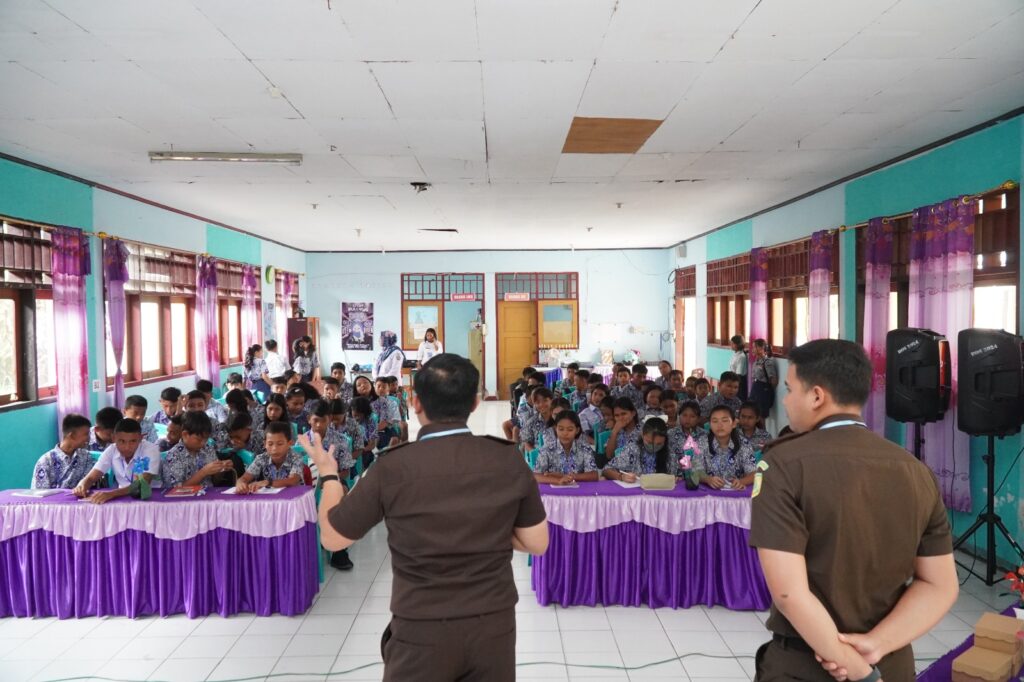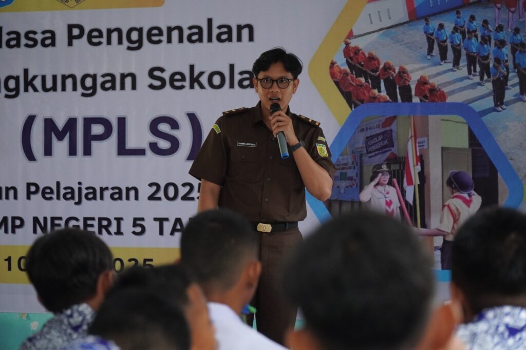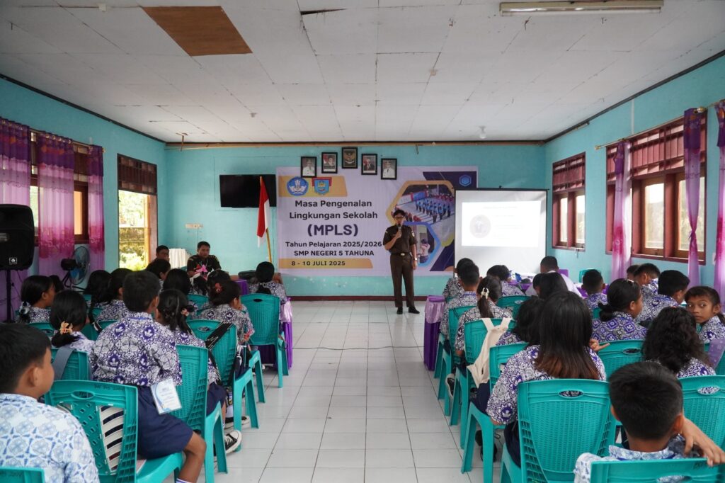 Tahuna- Calon Jaksa Kejaksaan Negeri Kepulauan Sangihe Irwan G. Samosir, S.H. , Aldhy P. Wibisono, S.H. dan Darwin J. Sitinjak, S.H. menghadiri kegiatian Masa Pengenalan Lingkungan Sekolah (MPLS) di SMP Negeri 5 Tahuna sebagai narasumber. (Rabu, 09/07/2025)
