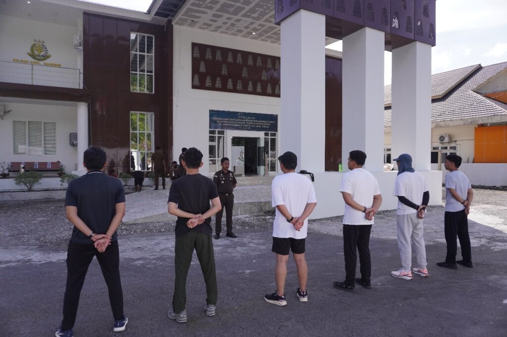 Tahuna- Calon Pegawai Negeri Sipil (CPNS) Kejaksaan Negeri Kepulauan Sangihe melakukan kegiatan Pelatihan Dasar Peraturan Baris Berbaris di Kantor Kejaksaan Negeri Kepulauan Sangihe. (Senin, 14/07/2025)