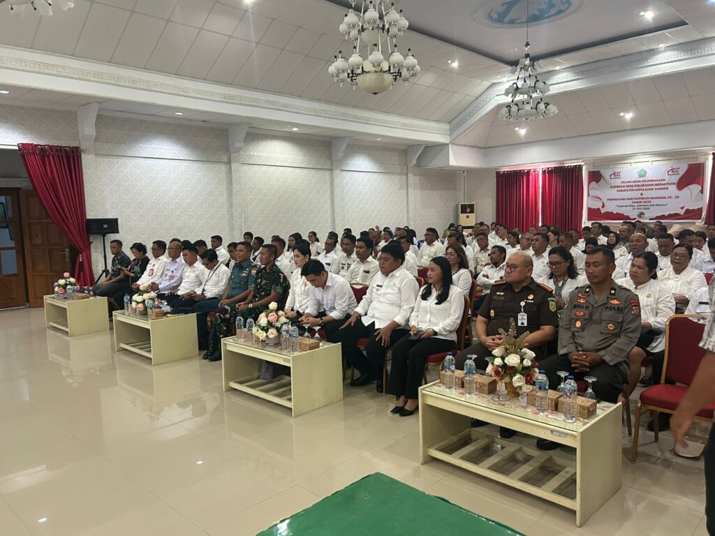 Acara Peluncuran Kelembagaan 167 Koperasi Desa/Kelurahan Merah Putih Kabupaten Kepulauan Sangihe ini dilaksanakan di ruang serbaguna rumah Jabatan Bupati Kepulauan Sangihe dan dihadiri oleh Forkopimda, Camat dan Lurah se-Kabupaten Kepulauan Sangihe.