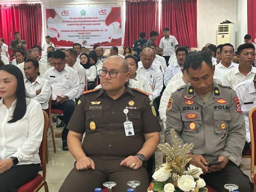 Tahuna- Kepala Kejaksaan Negeri Kepulauan Sangihe Dr. Hendra A. Ginting, S.H., M.H., menghadiri acara Peluncuran Kelembagaan 167 Koperasi Desa/Kelurahan Merah Putih Kabupaten Kepulauan Sangihe. (Senin, 21/07/2025)