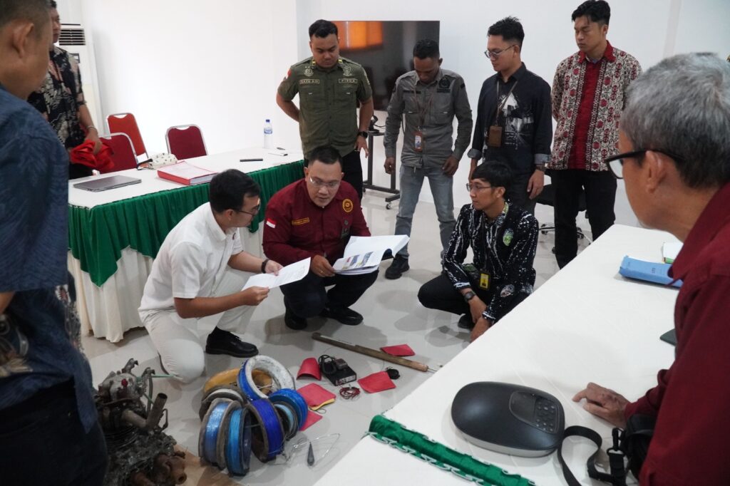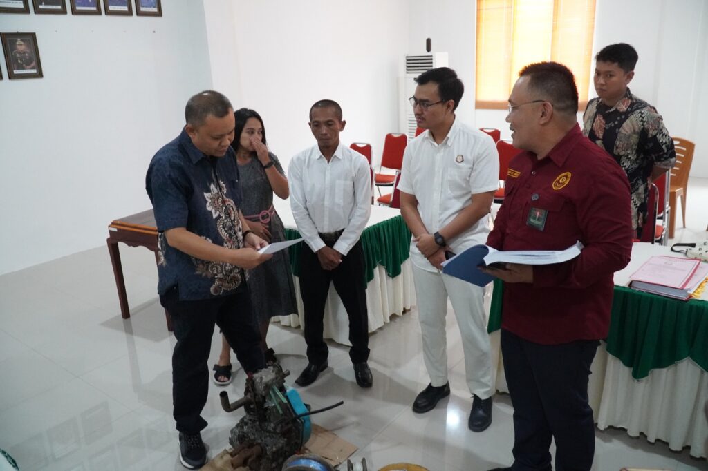 Tahuna-Jaksa Pentuntut Umum (JPU) pada Kejaksaan Negeri Kabupaten Kepulauan Sangihe Noldi Sompie, S.H., dan Muhammad Almas Hydayat, S.H. mengikuti pelaksanaan Sidang Pemeriksaan Setempat dalam perkara Tindak Pidana Perikanan terhadap terdakwa dengan inisial dan T.M.L. (Jumat, 04/07/2025)