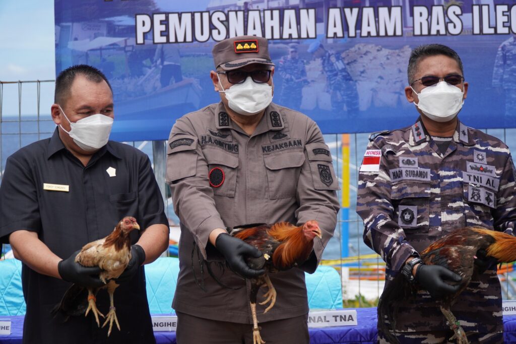Tahuna- Kepala Kejaksaan Negeri Kepulauan Sangihe Dr. Hendra A. Ginting,S.H., M.H., Menghadiri Kegiatan Penggagalan, Penyelundupan dan Pemusnahan Ayam Ras Ilegal. (Kamis, 03/07/2025)