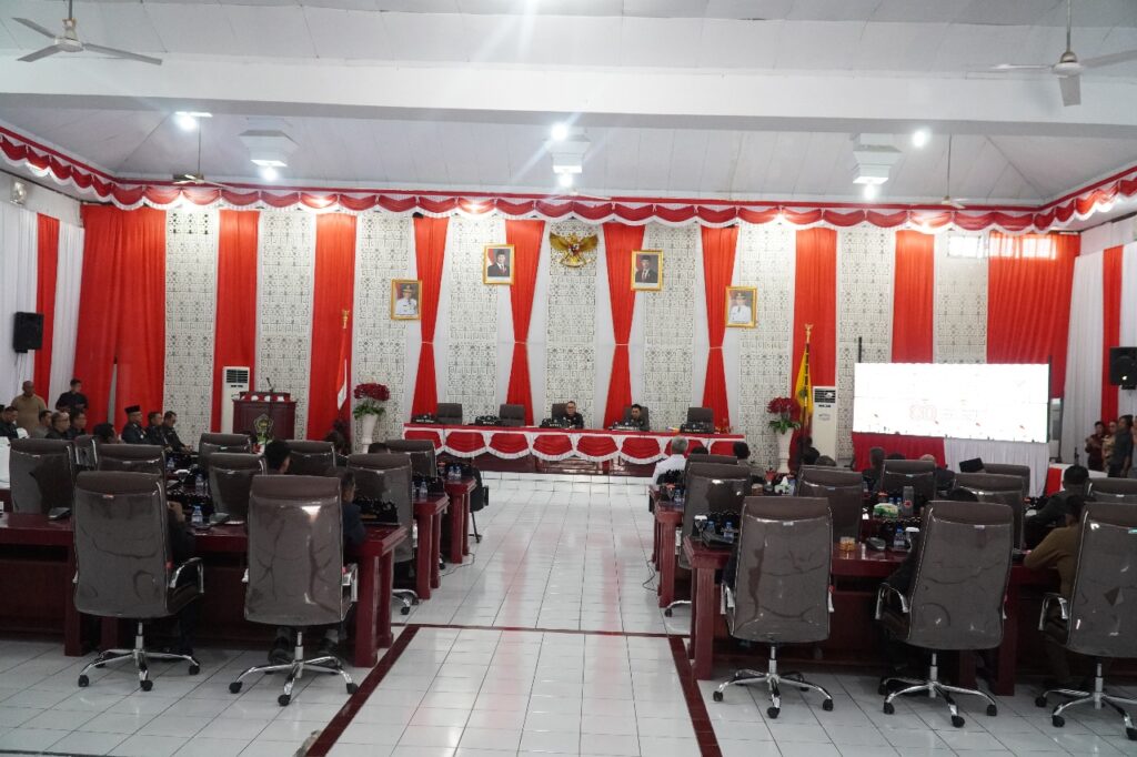 Tahuna – Dalam Rangka Memperingati Hari HUT Republik Indonesia ke-80 Kemerdekaan Republik Indonesia Tahun 2025, Kepala Kejaksaan Negeri Kepulauan Sangihe Dr. Hendra A. Ginting, S.H., M.H., mengahadiri acara Rapat Paripurna mendengarkan pidato Presiden Republik Indonesia pada sidang tahunan MPR RI dan sidang DPR RI dan DPD RI Tahun 2025.(Jumat,15/08/2025)