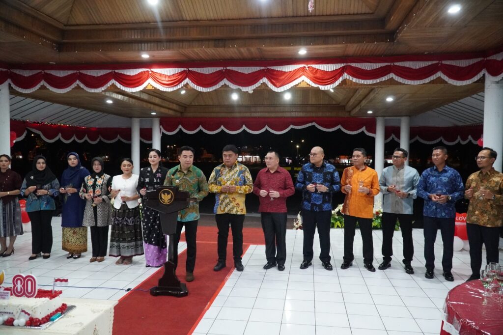 Acara Resepsi Kenegaraan dalam rangka Hari Kemerdekaan Republik Indonesia (RI) ke-80 Tahun 2025 yang berlangsung di rumah Jabatan Bupati Kepulauan Sangihe dihadiri oleh seluruh jajaran Forkopimda, Perangkat Daerah, Tokoh Agama, masyarakat, anggota Paskibraka, beserta para tamu undangan lainya.