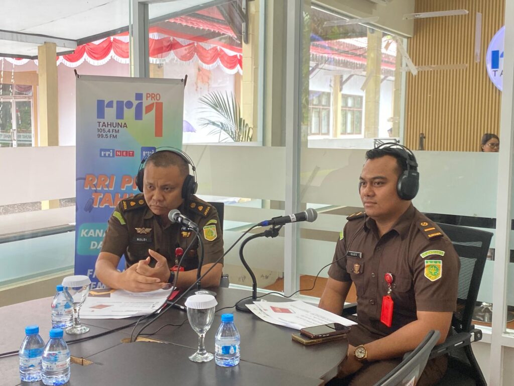 Kegiatan tersebut dilaksanakan di studio RRI Pro 1 Tahuna dan diikuti oleh Kepala Seksi Pidana Umum Noldi Sompie, S.H., Calon Jaksa Pada Kejaksaan Negeri Kepulauan Sangihe Moh. Krishna Bayu Aji, S.H. dan host Azizah Abusaeng