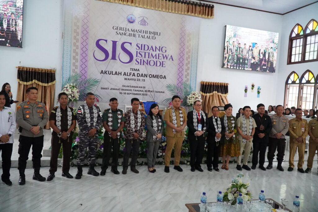 Acara Pembukaan Sidang Istimewa Sinode ke-IV GMIST Tahun 2025 ini dilaksanakan di gedung GMIST Jemaat Imanuel Tahuna dan dihadiri oleh Forkopimda Kabupaten Kepulauan Sangihe, Kepala OPD, Tokoh Agama, Tokoh Masyarakat, Pengurus Majelis Pekerja Sinode, Resort, serta para peserta sidang.