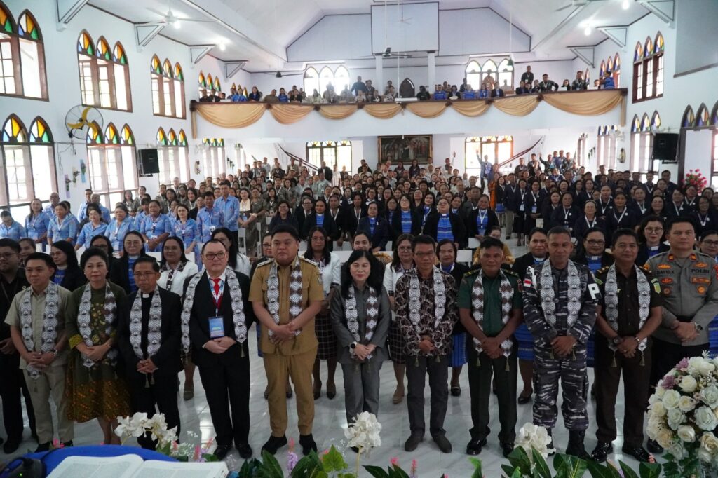 TAHUNA- Kepala Kejaksaan Negeri Kepulauan Sangihe diwakili oleh Kepala Sub Bagian Pembinaan Heince Y.Y.I. Kacomba, S.H., menghadiri acara Pembukaan Sidang Istimewa Sinode ke-IV GMIST Tahun 2025. (Selasa, 16/09/2025)