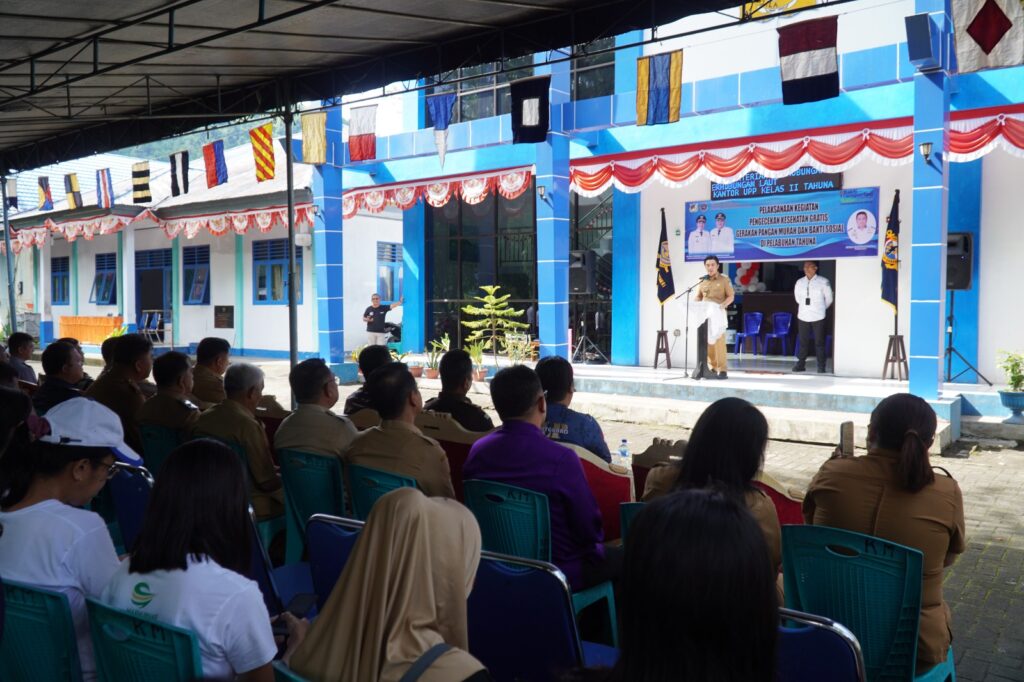 TAHUNA – Kepala Kejaksaan Negeri Kabupaten Kepulauan Sangihe diwakili oleh Kepala Sub Bagian Pembinaan Heince Y.Y.I. Kacomba, S.H., menghadiri kegiatan Pengecekan Kesehatan Gratis, Gerakan Pangan Murah dan Bhakti Sosial. (Senin, 08/09/2025)
