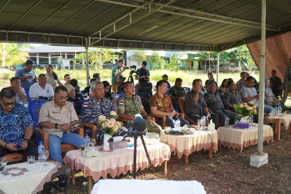 Peletakan Batu Pertama (Ground Breaking) Pembangunan Kantor Koperasi Desa/Kelurahan Merah Putih Tahap Satu ini dilaksanakan secara serentak bersama Presiden Republik Indonesia melalui video conference dan diikuti oleh Forkopimda Kabupaten Kepulauan Sangihe dan sejumlah tamu undangan lainya.