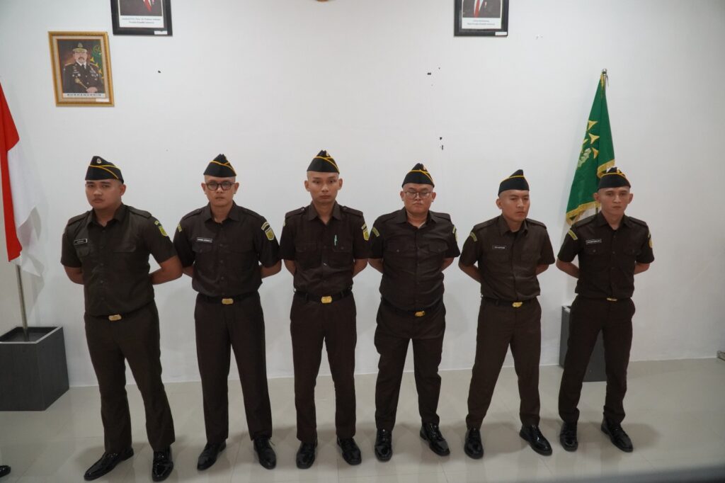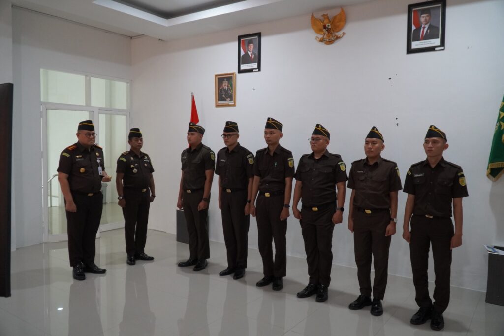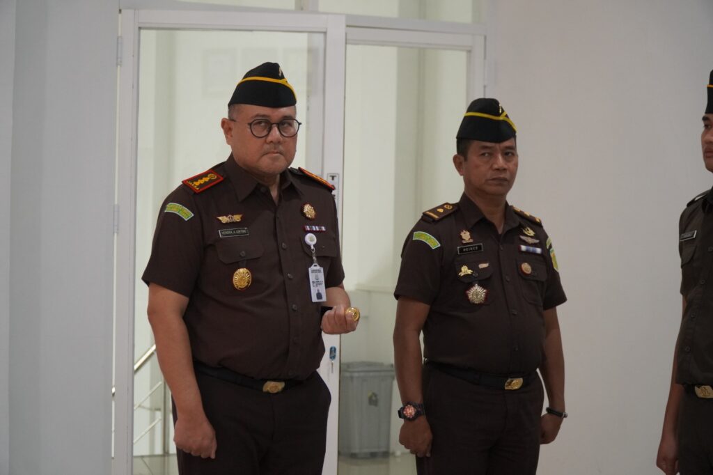 Tahuna- Kepala Kejaksaan Negeri Kepulauan Sangihe Dr. Hendra A. Ginting, S.H., M.H., Kepala Subbagian Pembinaan Heince Y. Y. I. Kacomba, S.H., dan Calon Pegawai Negeri Sipil Golongan III Pada Kejaksaan Negeri Kepulauan Sangihe mengikuti Pembukaan Pelatihan Dasar Calon Pegawai Negeri Sipil Golongan III