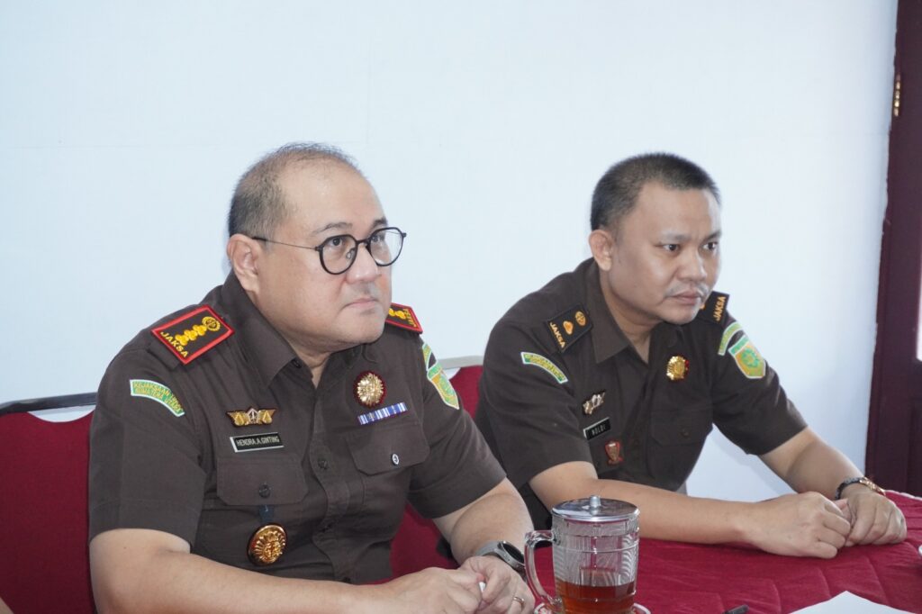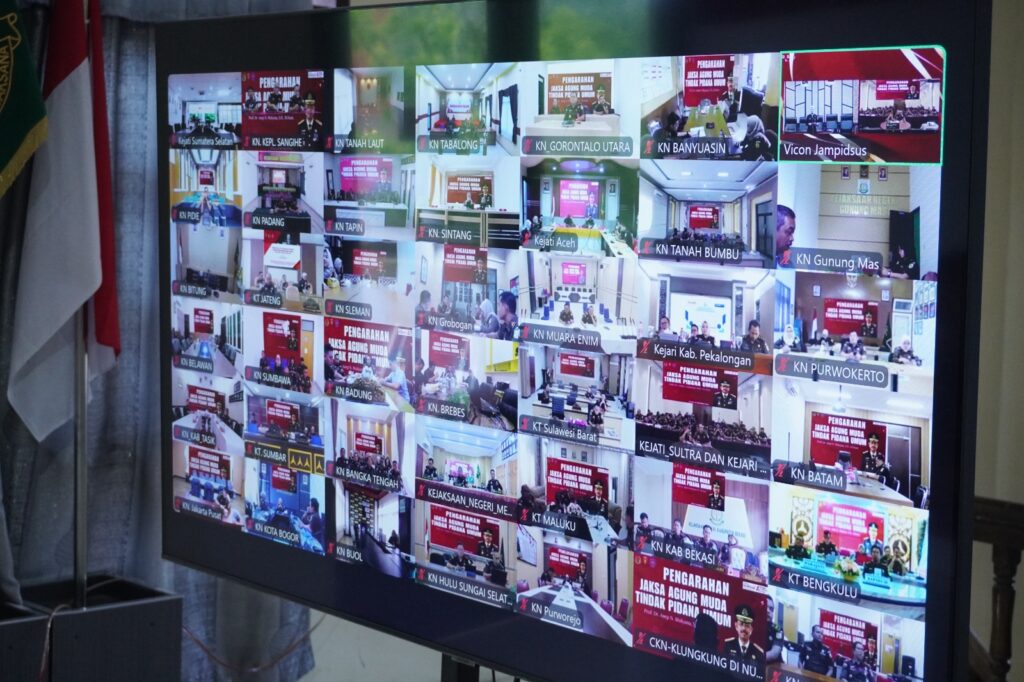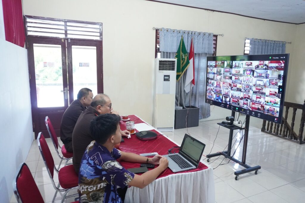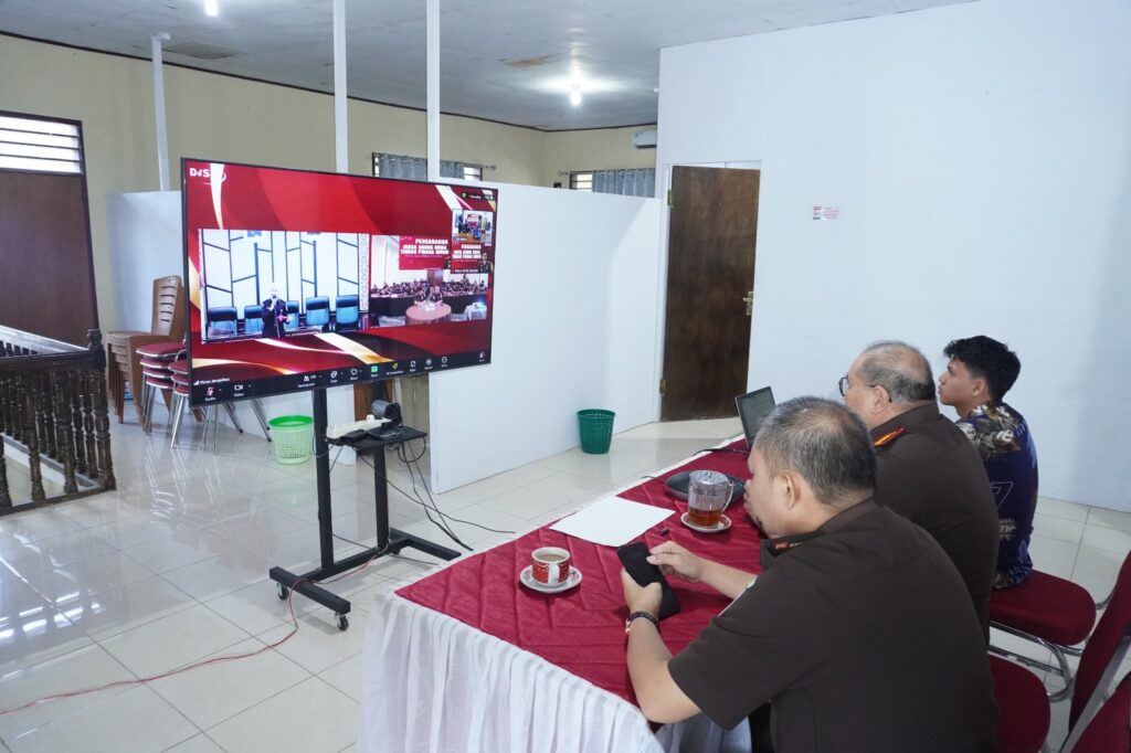 Tahuna-Kepala Kejaksaan Negeri Kepulauan Sangihe Dr. Hendra Antonius Ginting, S.H., M.H., bersama Kepala Seksi Tindak Pidana Umum Noldy Sompi, S.H., mengikuti pengarahan dari Jaksa Agung Muda Tindak Pidana Umum secara daring melalui Zoom Meeting dari aula lantai 2 kantor Kejaksaan Negeri Kepulauan Sangihe. (Selasa, 19/11/2024)