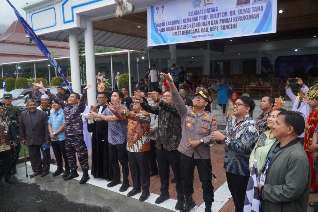 Pawai Kerukunan Lintas Agama ini dilaksanakan di Pendopo Rumah Jabatan Bupati Kabupaten Kepulauan Sangihe dan dihadiri oleh unsur FORKOPIMDA, tamu undangan dan peserta Pawai Kerukunan Lintas Agama.