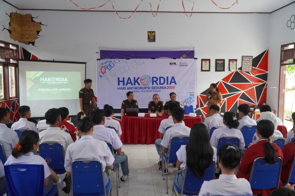 Tahuna — Kejaksaan Negeri Kepulauan Sangihe hadir di SMA Negeri 2 Tahuna dalam rangka memperingati Hari Anti Korupsi Sedunia (HAKORDIA) Tahun 2025 dengan memberikan penyuluhan hukum kepada para siswa. (Senin, 08/12/2025)
