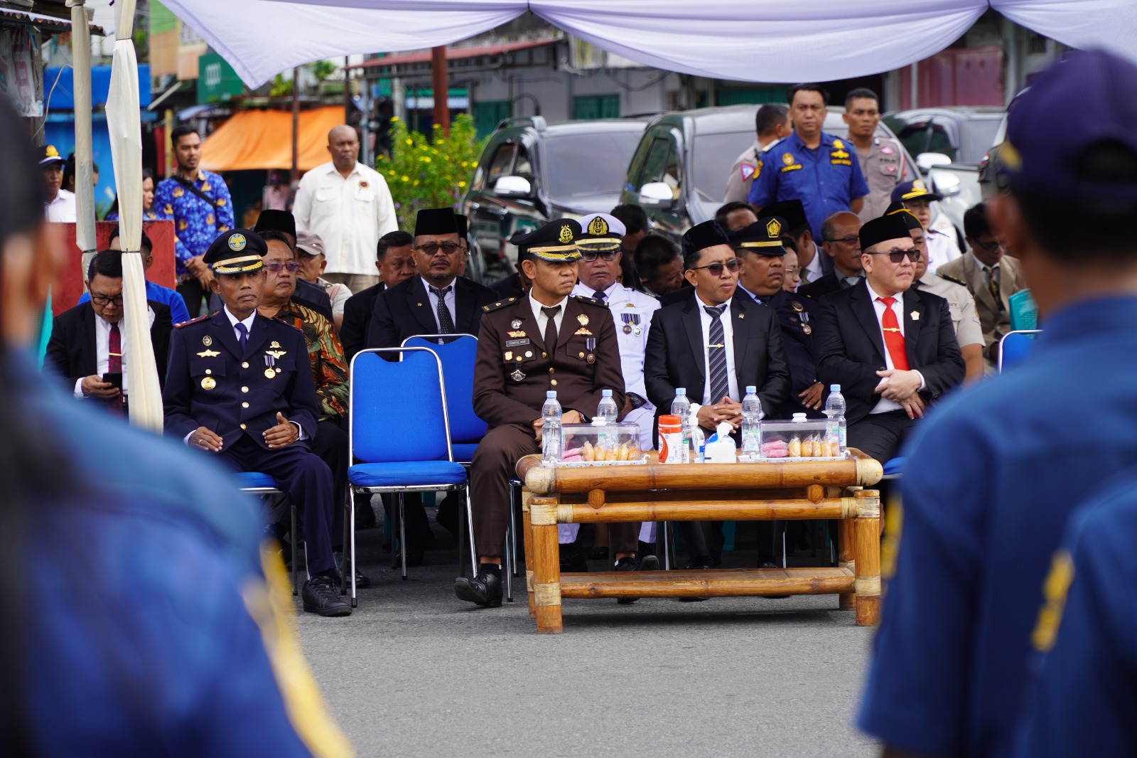 Bertindak sebagai Inspektur upacara Pj Bupati Kepulauan Sangihe Albert Huppy Wounde, S.H., M.H. dan di ikuti oleh Seluruh Perangkat Daerah Kabupaten Kepulauan Sangihe, FORKOPIMDA Kabupaten Kepulauan Sangihe beserta para tamu undangan lainya.