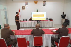 Tahuna-Kepala Kejaksaan Negeri Kepulauan Sangihe I Bagus Putra Gede Agung, S.H., M.H. selaku Penguji, didampingi Mentor Kepala...